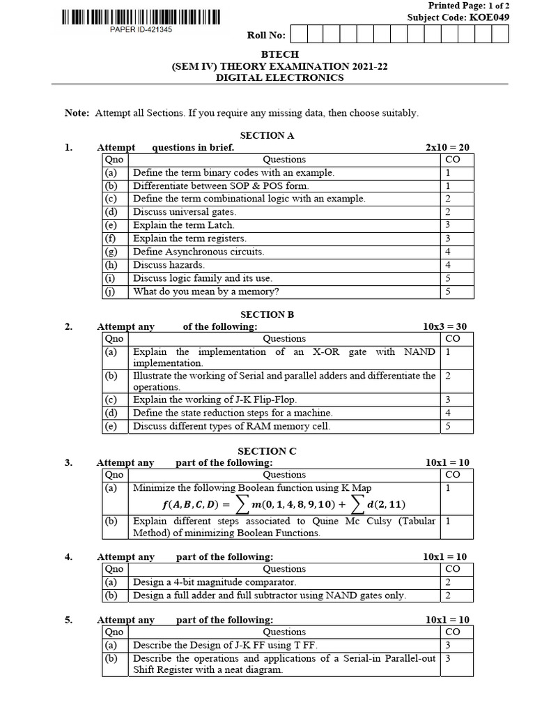 NOTE: 1. Attempt all Sections. If require any missing data, then choose suitably.