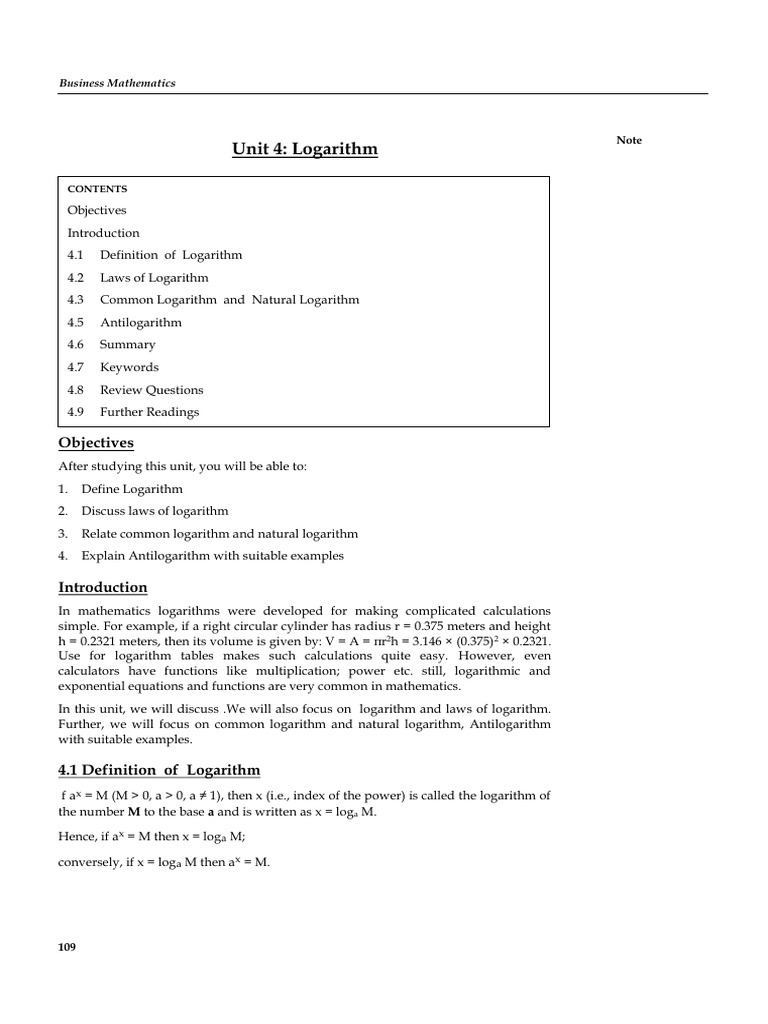 Unit 4: Logarithm