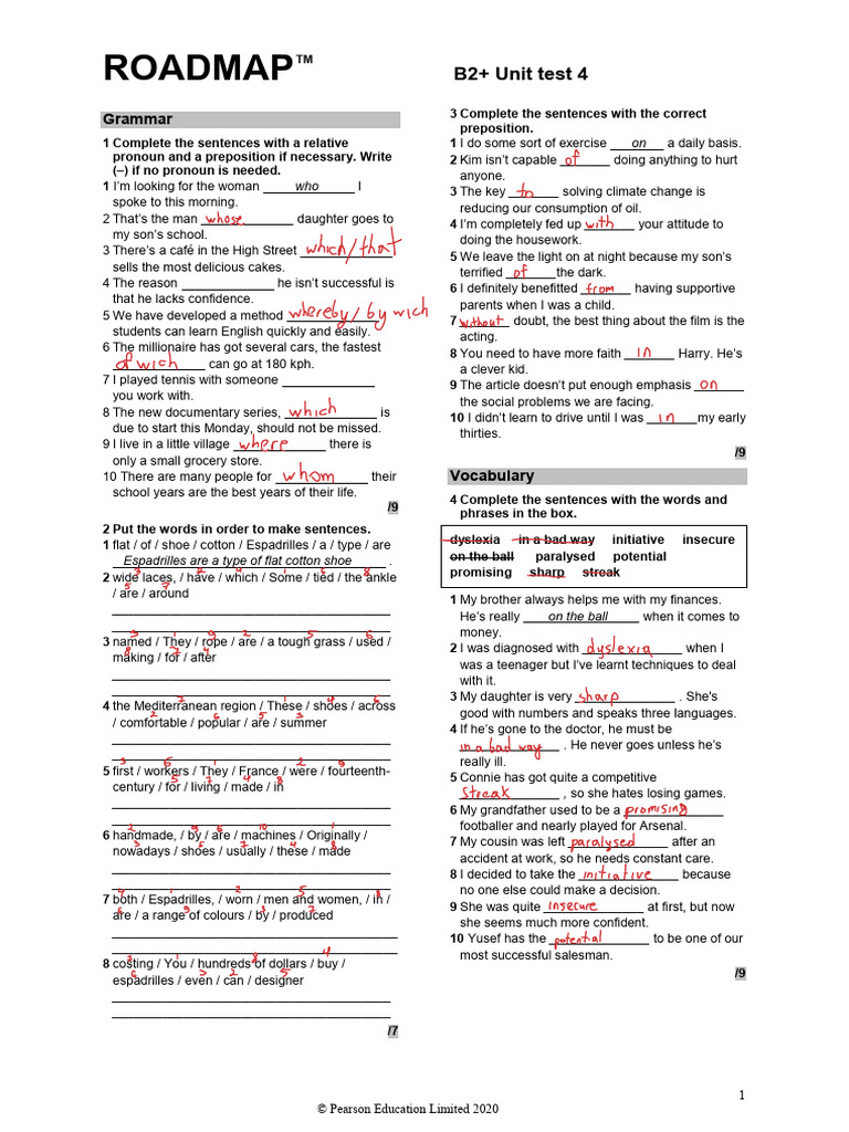 5 Complete the sentences with the correct word. 6 Complete the text with the correct answers, a,