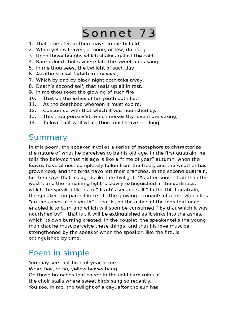 which the speaker likens to “death’s second self.” In the third quatrain,