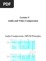 redundancies, are exploited as well. Anyone who has ever taken a reel of the old-style super-8 movie film and held it up to a light can certainly remember seeing that most consecutive frames within a sequence are very similar to the frames both before and after the frame of interest. Temporal processing to exploit this redundancy uses a technique known as block-based motion compensated prediction, using motion estimation. A block diagram of the basic encoder with extensions for nonintra frame coding techniques is given in Figure 18. Of course, this encoder can also support intra frame coding as a subset. P Frames Starting with an intra, or I frame, the encoder can forward predict a future frame. This is commonly referred to as a P frame, and it may also be predicted from other P frames, although only in a forward time manner. As an example, consider a group of pictures that lasts for 6 frames. In this case, the frame ordering is given as I,P,P,P,P,P,I,P,P,P,P, Each P frame in this sequence is predicted from the frame immediately preceding it, whether it is an I frame or a P frame. As a reminder, I frames are coded spatially with no reference to any other frame in the sequence. B Frames The encoder also has the option of using forward/backward interpolated prediction. These frames are commonly referred to as bi-directional interpolated prediction frames, or B frames for short. As an example of the usage of I, P, and B frames, consider a group of pictures that lasts for 6 frames, and is given as I,B,P,B,P,B,I,B,P,B,P,B, As in the previous I & P only example, I frames are coded spatially only and the P frames are forward predicted based on previous I and P frames. The B frames however, are coded based on a forward prediction from a previous I or P frame, as well as a backward prediction from a succeeding I or P frame. As such, the example sequence is processed by the encoder such that the first B frame is predicted from the first I frame and first P frame, the second B frame is predicted from the second and third P frames, and the third B frame is predicted from the third P frame and the first I frame of the next group of pictures. From this example, it can be seen that backward prediction requires that the future frames that are to be used for backward prediction be encoded and transmitted first, out of order. This process is summarized in Figure 19. There is no defined limit to the number of consecutive B frames that may be used in a group of pictures, and of course the optimal number is application dependent. Most broadcast quality applications however, have tended to use 2 consecutive B frames (I,B,B,P,B,B,P,) as the ideal trade-off between compression efficiency and video quality.