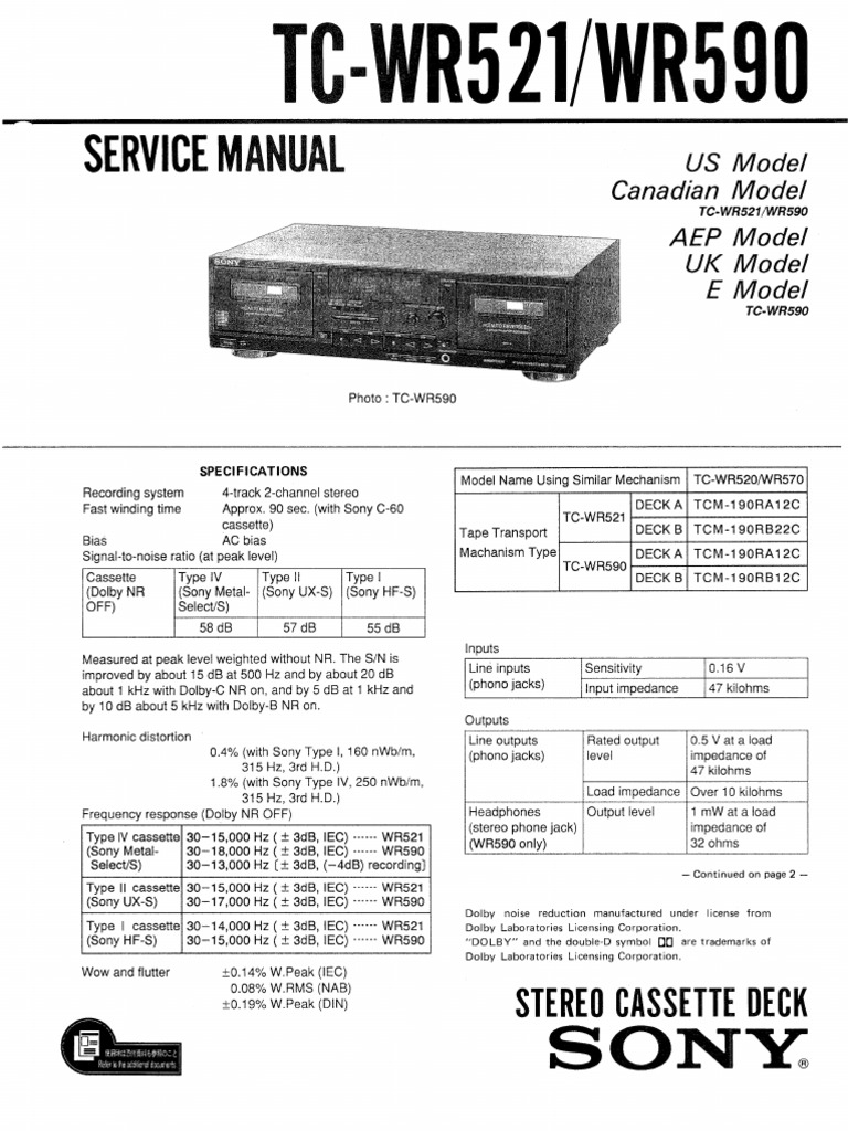0 ratings0% found this document useful (0 votes) 1K views29 pagesSONY TC-WR521 TC-WR590 Service