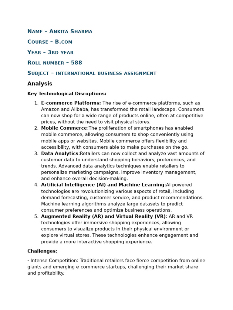 1. Analysis of Technological Disruptions: - Traditional retail businesses