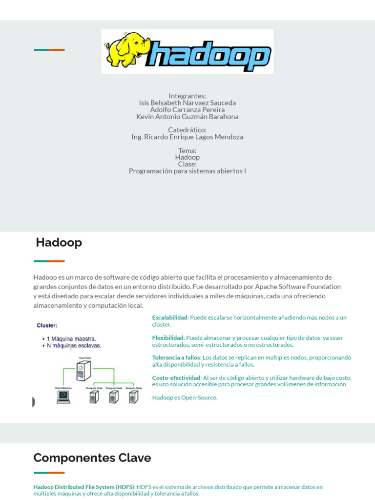 Hadoop es un marco de software de código abierto que facilita el procesamiento y almacenamiento de