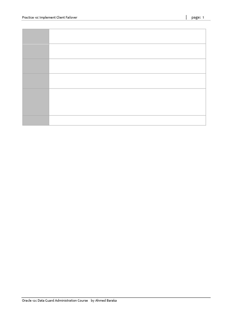 Purpose In this practice we will enable the automatic client failover on a SQL*Plus