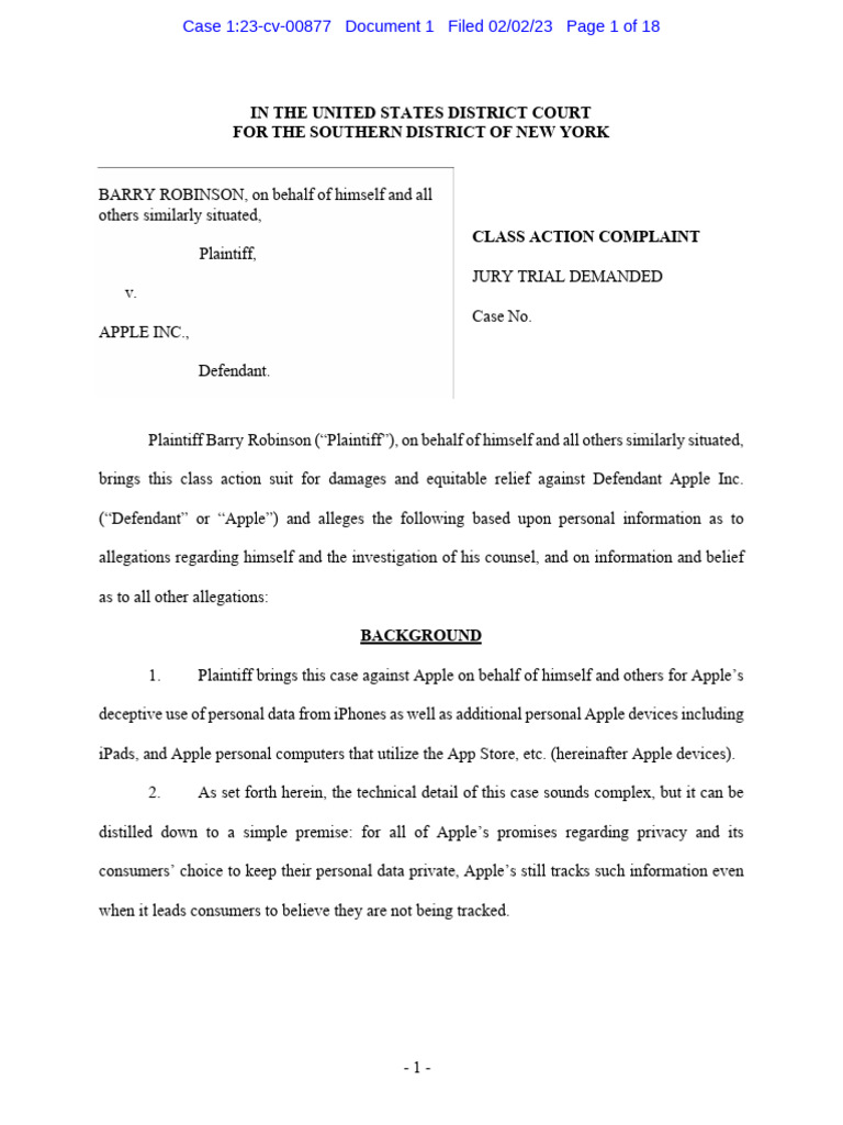 1. Plaintiff brings this case against Apple on behalf of himself and others for Apple’s