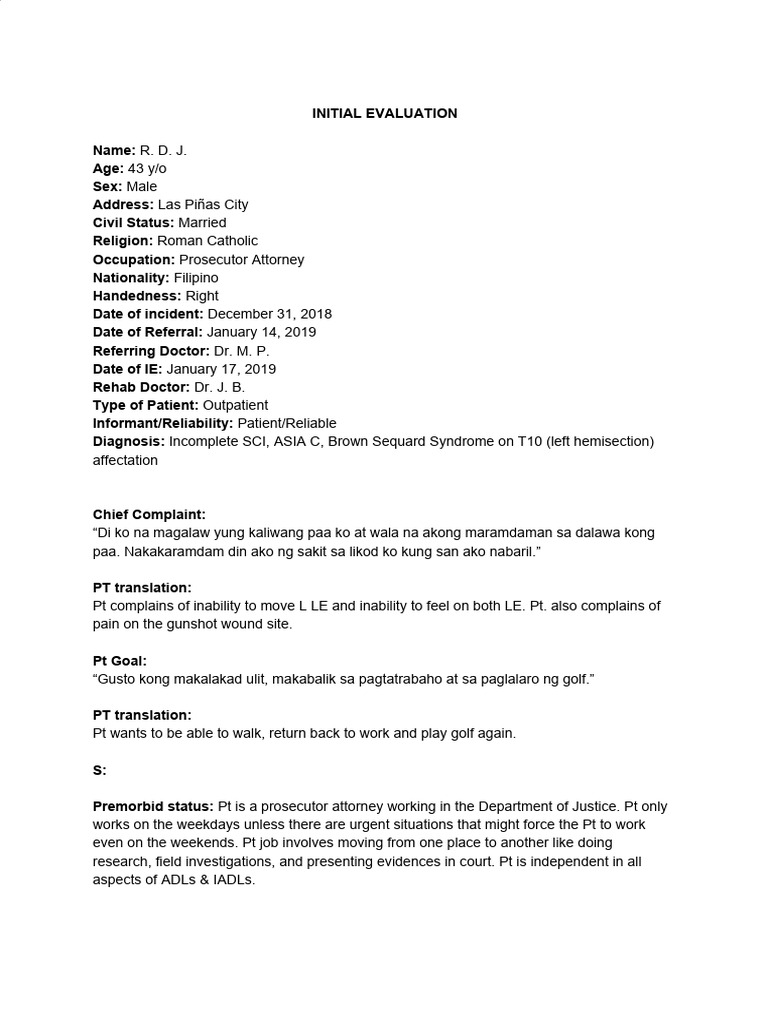 ● Pt works as a prosecutor attorney in the Department of Justice located in Malate,