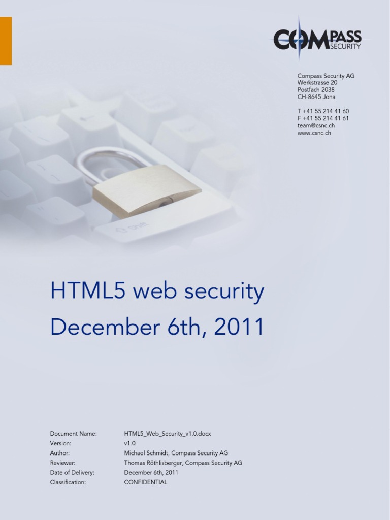 HTML5_Web_Security_v1.0.docx v1.0 Michael Schmidt, Compass Security AG Thomas Rthlisberger, Compass Security AG December 6th, 2011 CONFIDENTIAL