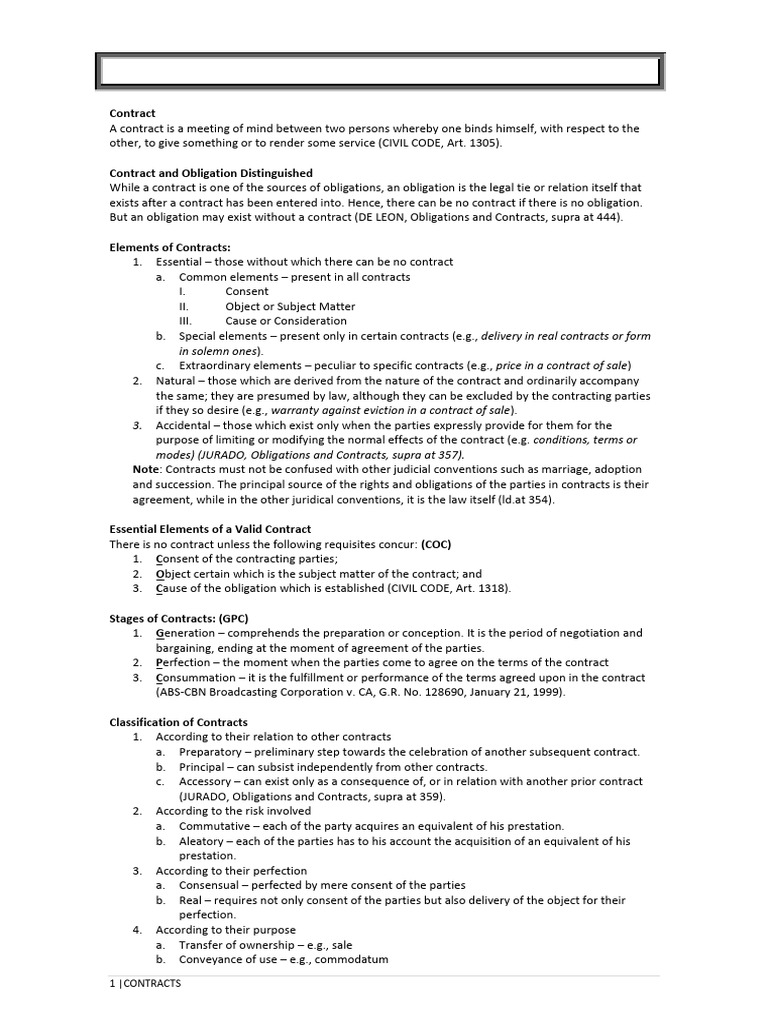 contract (JURADO, Obligations and Contracts, supra at 468).