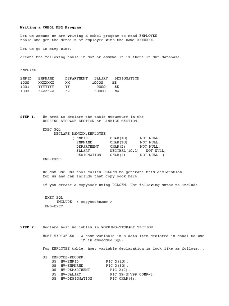 Writing a COBOL DB2 Program.
