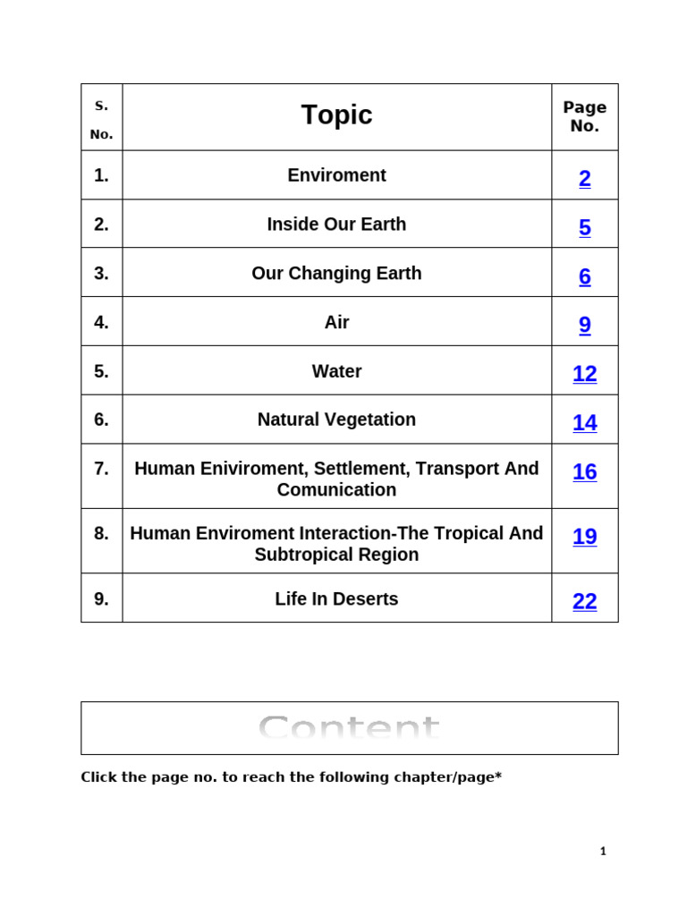 Natural Environment comprises land, water, air, plants and animals. Lithosphere