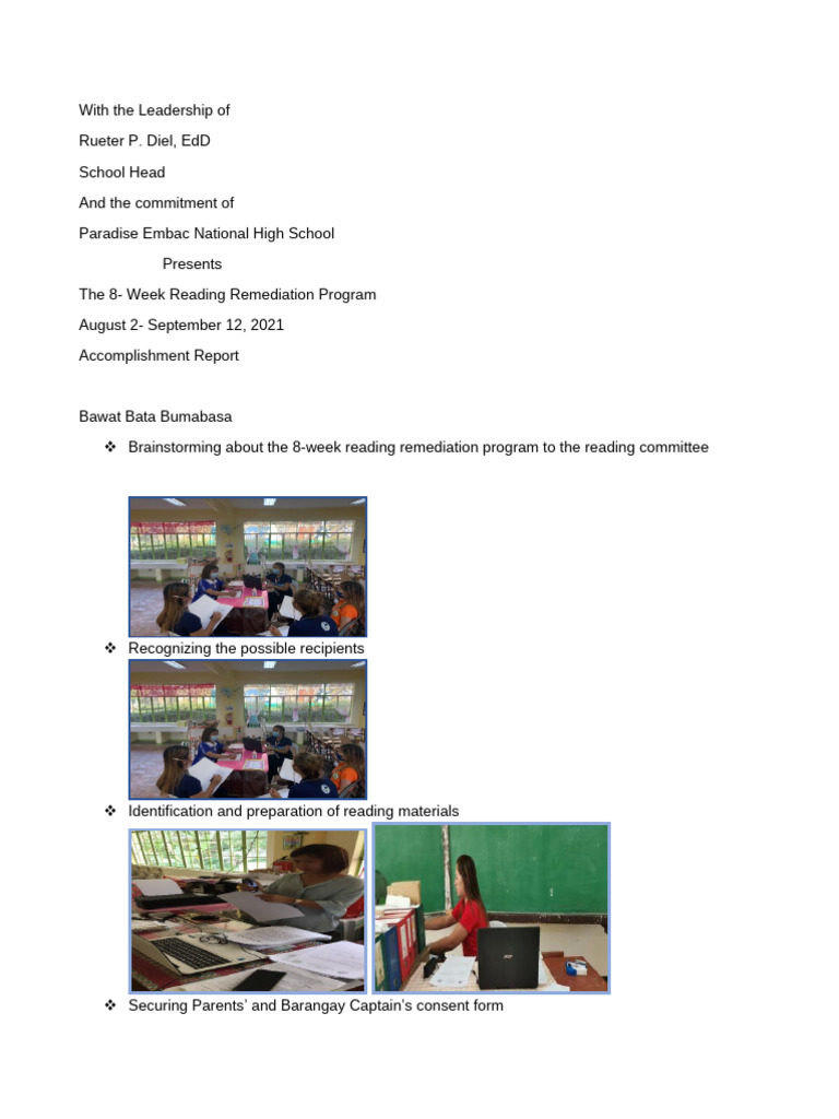 Brainstorming about the 8-week reading remediation program to the reading committee