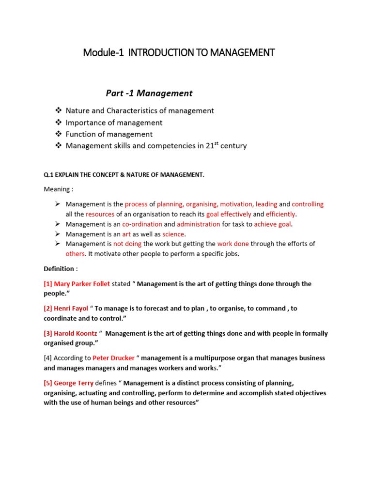 Q.1 EXPLAIN THE CONCEPT & NATURE OF MANAGEMENT.