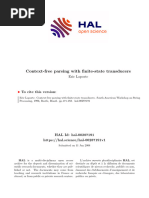 C = {V, N, Det} F (loves) = V F (woman) = N F (John) = N F (a) = Det (10) CF G = P, T, N, S P = {V N loves N, N Det woman, N Det John, N woman, N John, Det a} T =L N =C S = {V } As can be seen from (8), a CFG converted from a HGDG must have one and only one terminal symbol on the right hand side of any production rule. This resembles the Greibach Normal Form, where each production rule is of the form A a x1 ... xn , where a must be a terminal symbol and all x1 nonterminal symbols. Greibach Normal Forms are, as HGDG, weakly equivalent to CFG. Figure 5 now depicts an analysis of John loves a woman using the CFG given in (10). As can be seen, the analysis tree of the same sentence using a converted CFG is equivalent to the dependency tree from gure 4, except that the dotted projection edges are replaced by solid edges from preterminal to terminal nodes.
