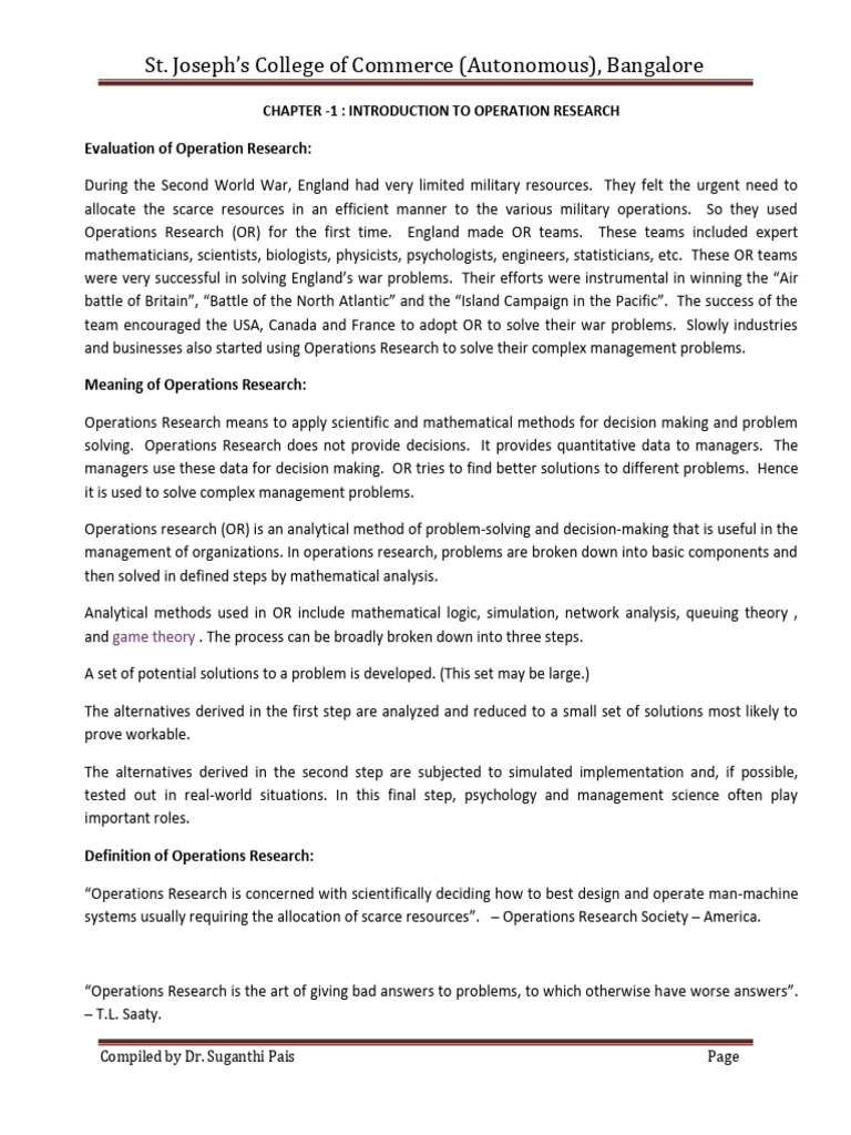 6. Objectives: OR attempts to provide the best and optimal solution to a given problem.