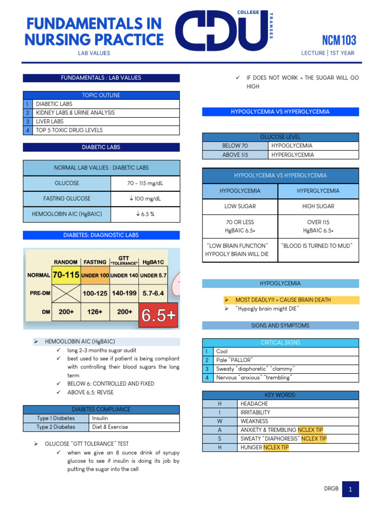 2 KIDNEY LABS & URINE ANALYSIS HYPOGLYCEMIA VS HYPERGLYCEMIA