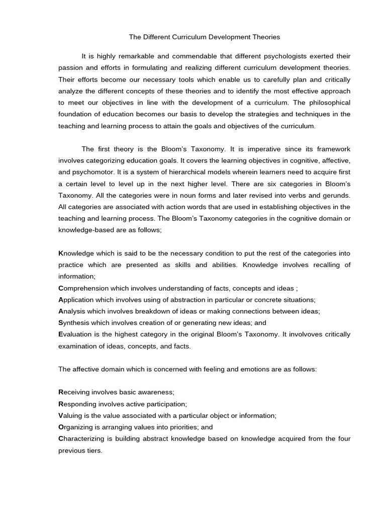 The Bloom’s Taxonomy is effective in curriculum development since through the