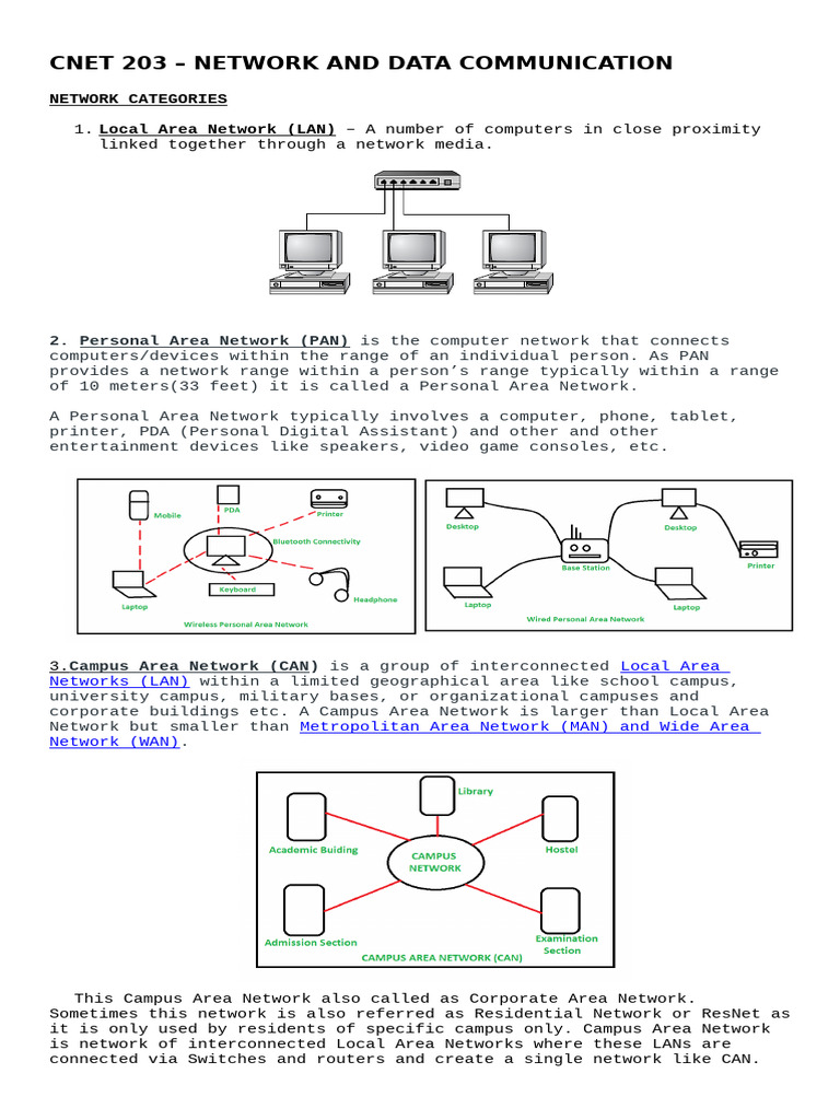 corporate buildings etc. A Campus Area Network is larger than Local Area