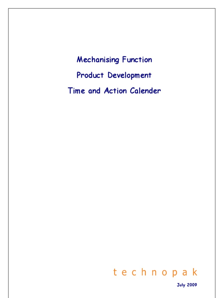 Mechanising Function Product Development Time and Action Calender