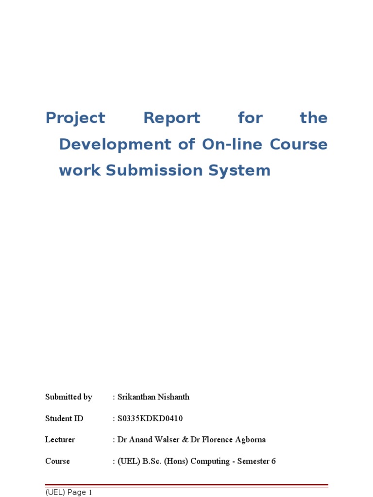: Srikanthan Nishanth : S0335KDKD0410 : Dr Anand Walser & Dr Florence Agborna : (UEL) B.Sc. (Hons) Computing - Semester 6