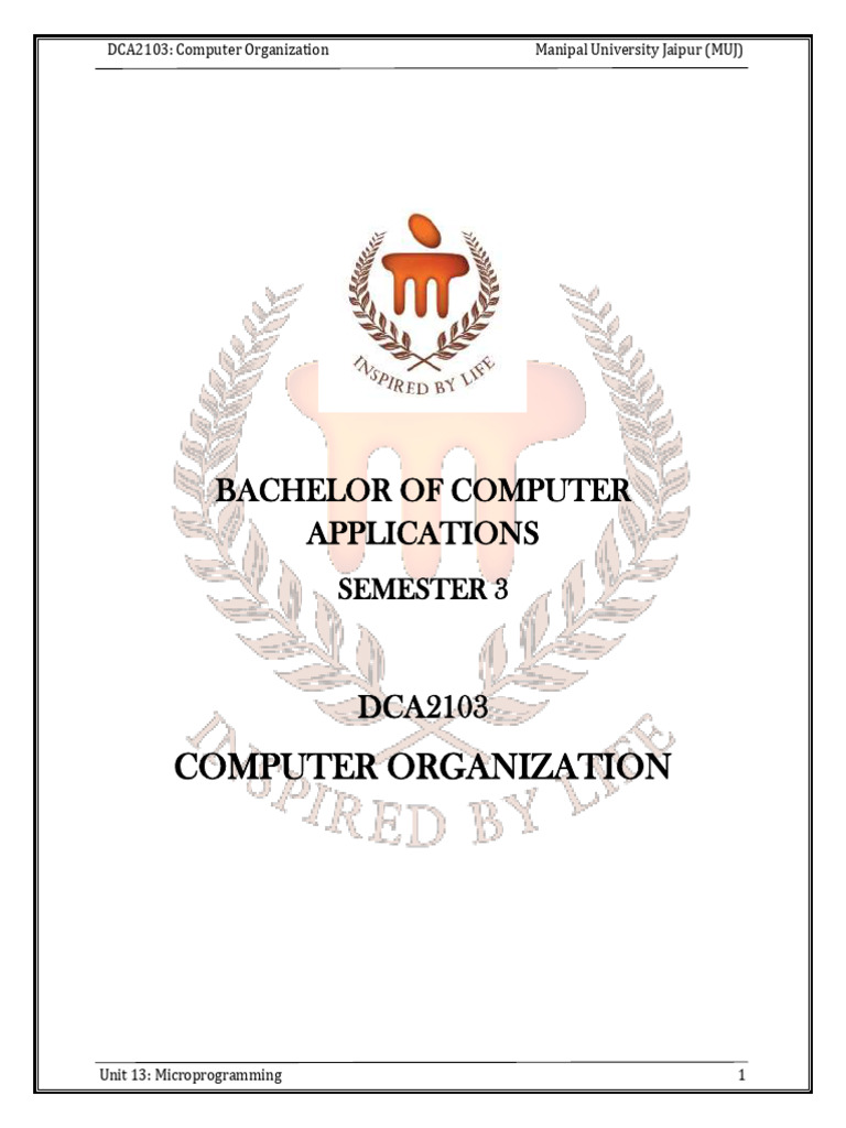 instruction. Figure 13.1 shows the Layout of a Micro- programmed Unit.