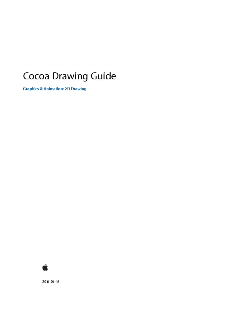 Overview of Cocoa Drawing (page 15) introduces drawing-related concepts and the Cocoa support for drawing. Graphics Contexts (page 25) describes the drawing environment and provides examples of how you configure the environment to suit your needs. Coordinate Systems and Transforms (page 39) describes the coordinate systems used for drawing and provides examples of how you manipulate your content using transforms. Color and Transparency (page 59) provides basic information about color and shows you how to use the color-related Cocoa objects. Paths (page 67) describes the basic drawing tools found in Cocoa and provides detailed information about how to create and manipulate everything from simple shapes to Bezier paths. Images (page 93) describes the image classes found in Cocoa and provides examples of how to create and manipulate images in your application. Text (page 121) provides an overview of text and its relationship to the Cocoa drawing environment.