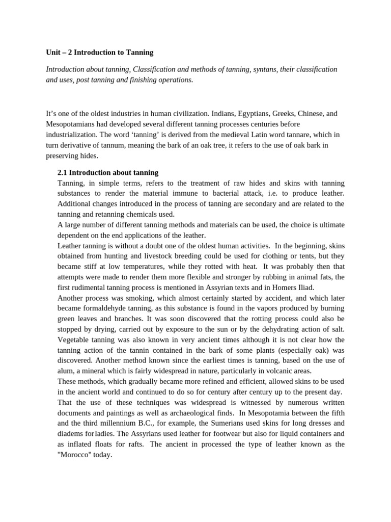 Introduction about tanning, Classification and methods of tanning, syntans, their classification
