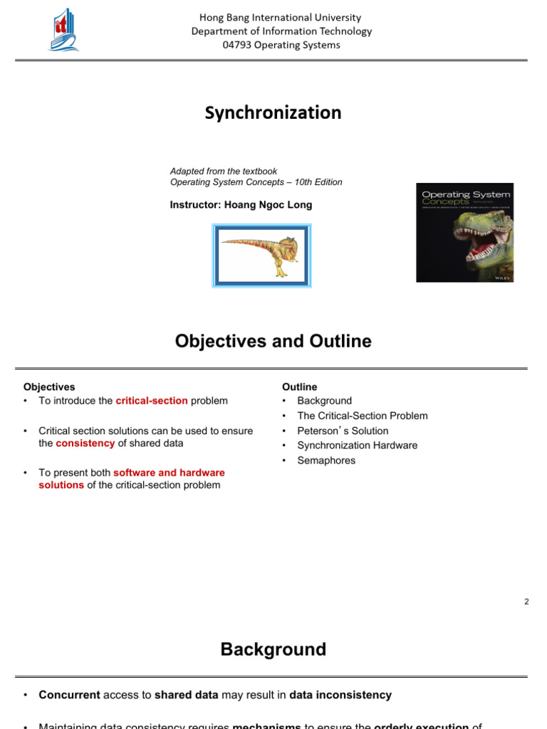 the consistency of shared data • Synchronization Hardware