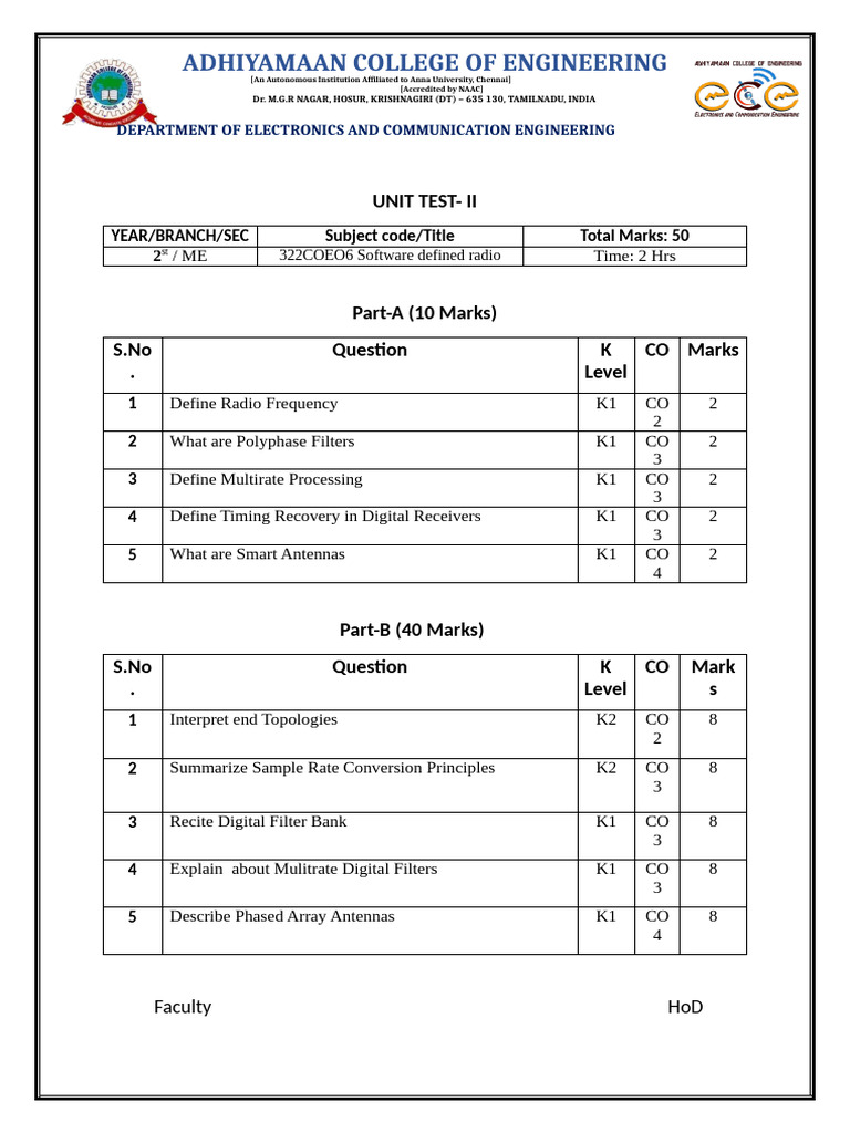 2st / ME 322COEO6 Software defined radio Time: 2 Hrs