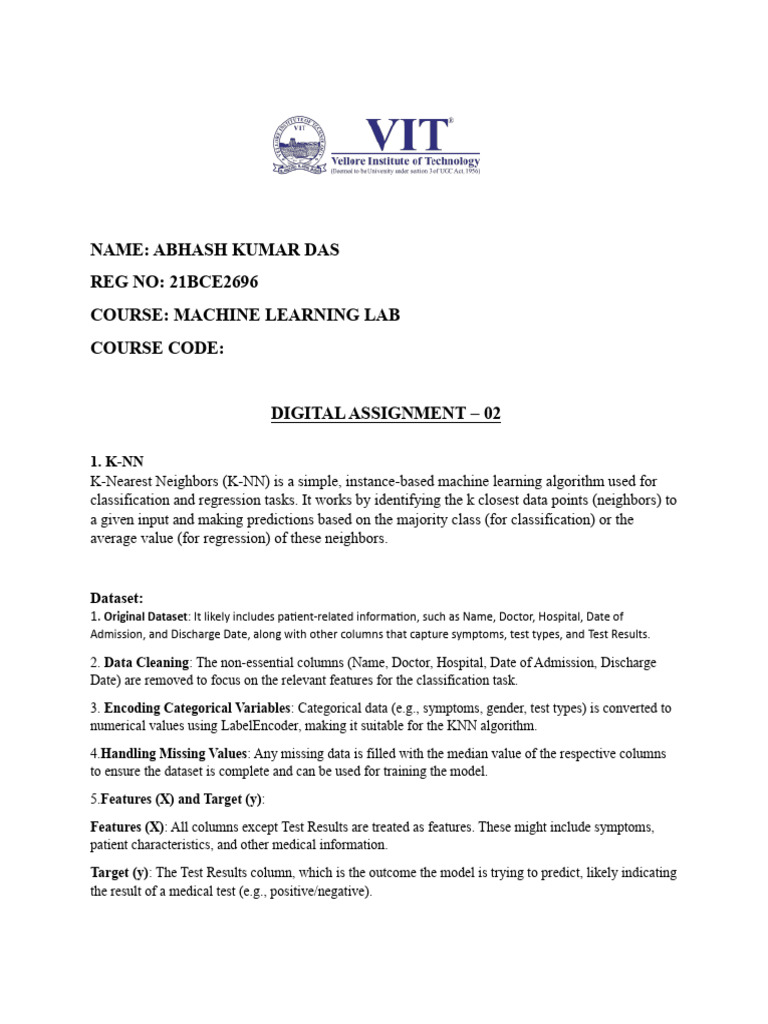 various symptoms and patient information. The model then classifies new data points by identifying the