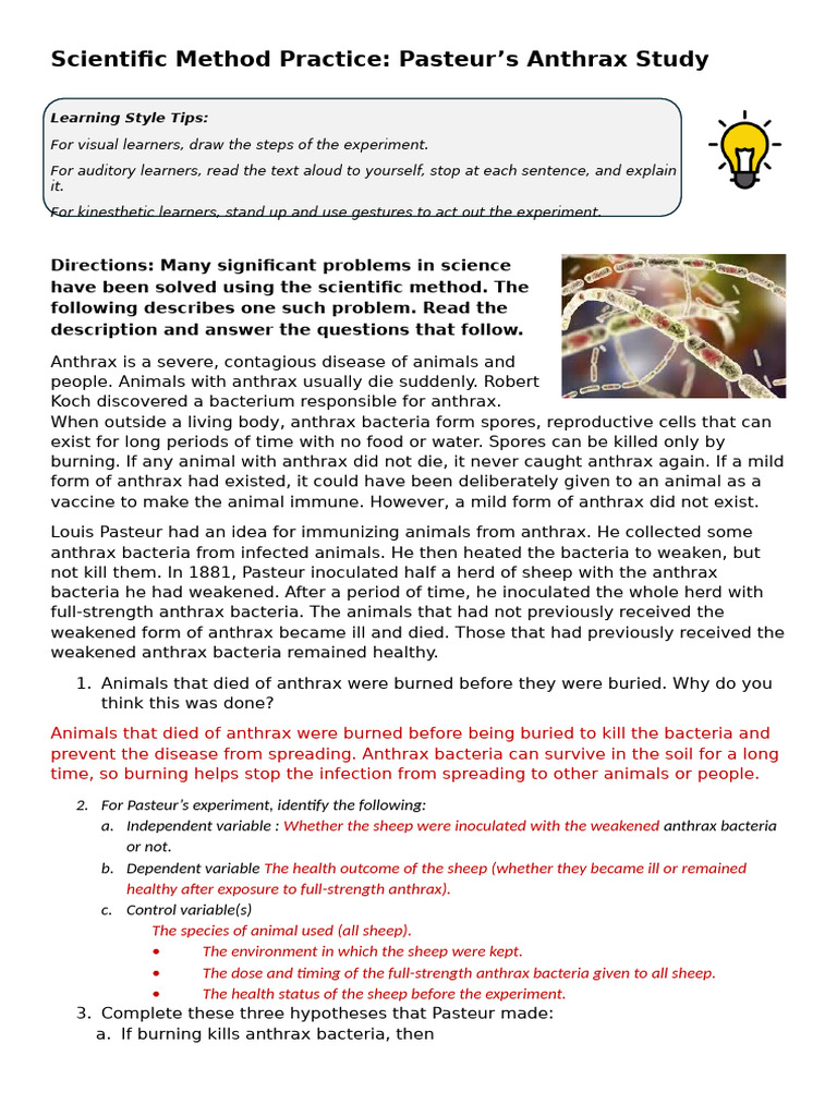 Scientific Method Practice: Pasteur’s Anthrax Study