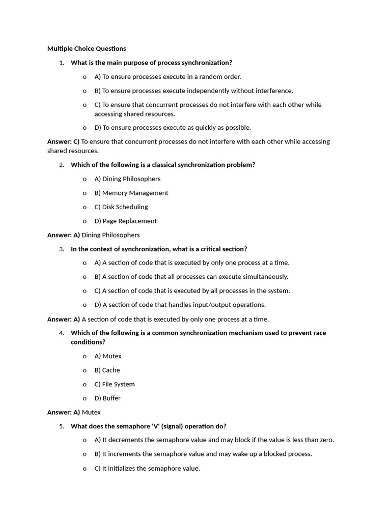 1. True or False: A binary semaphore can be used to implement mutual exclusion.