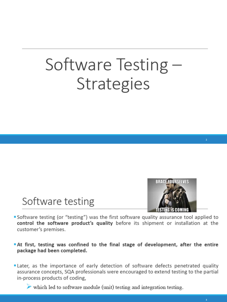 Software testing (or “testing”) was the first software quality assurance tool applied to