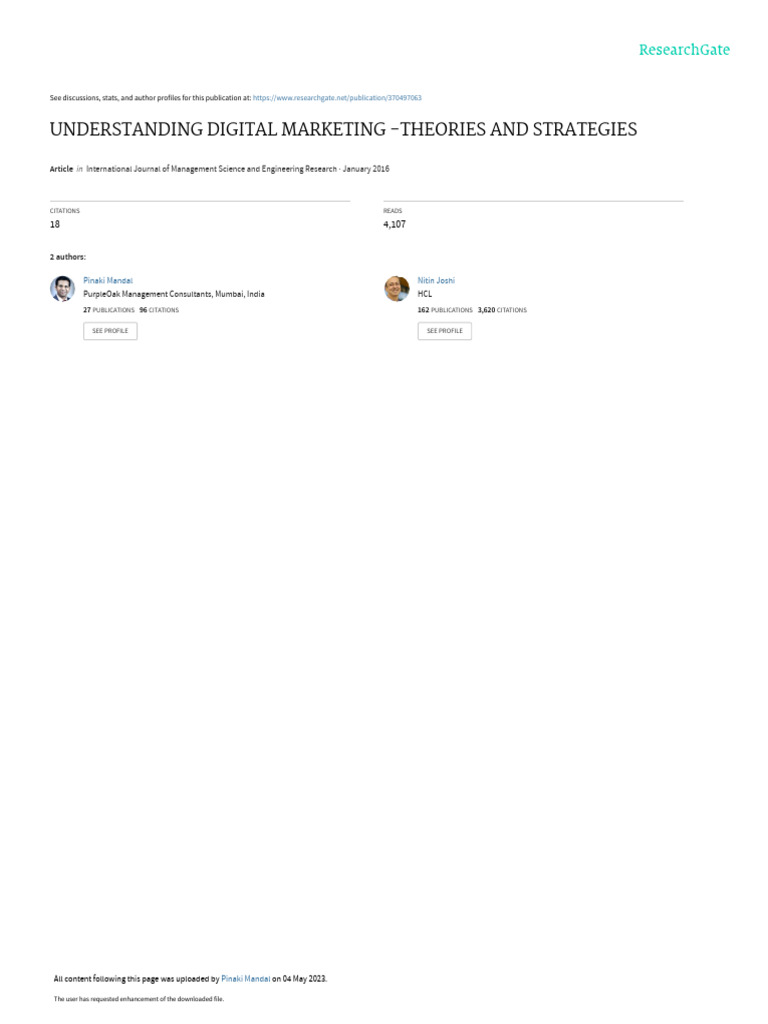 digital marketing is and how it affects today‟s marketing scenario. It elaborates the various strategies