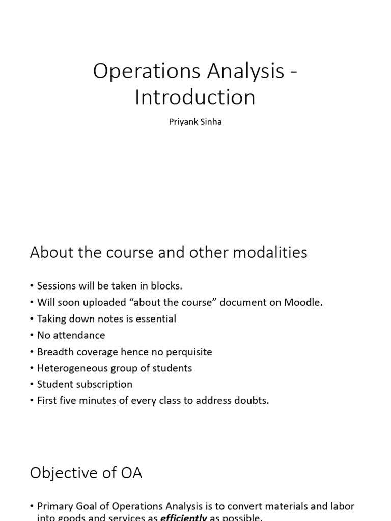 • Primary Goal of Operations Analysis is to convert materials and labor