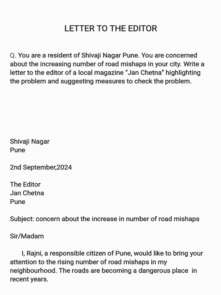 Q. You are a resident of Shivaji Nagar Pune. You are concerned
