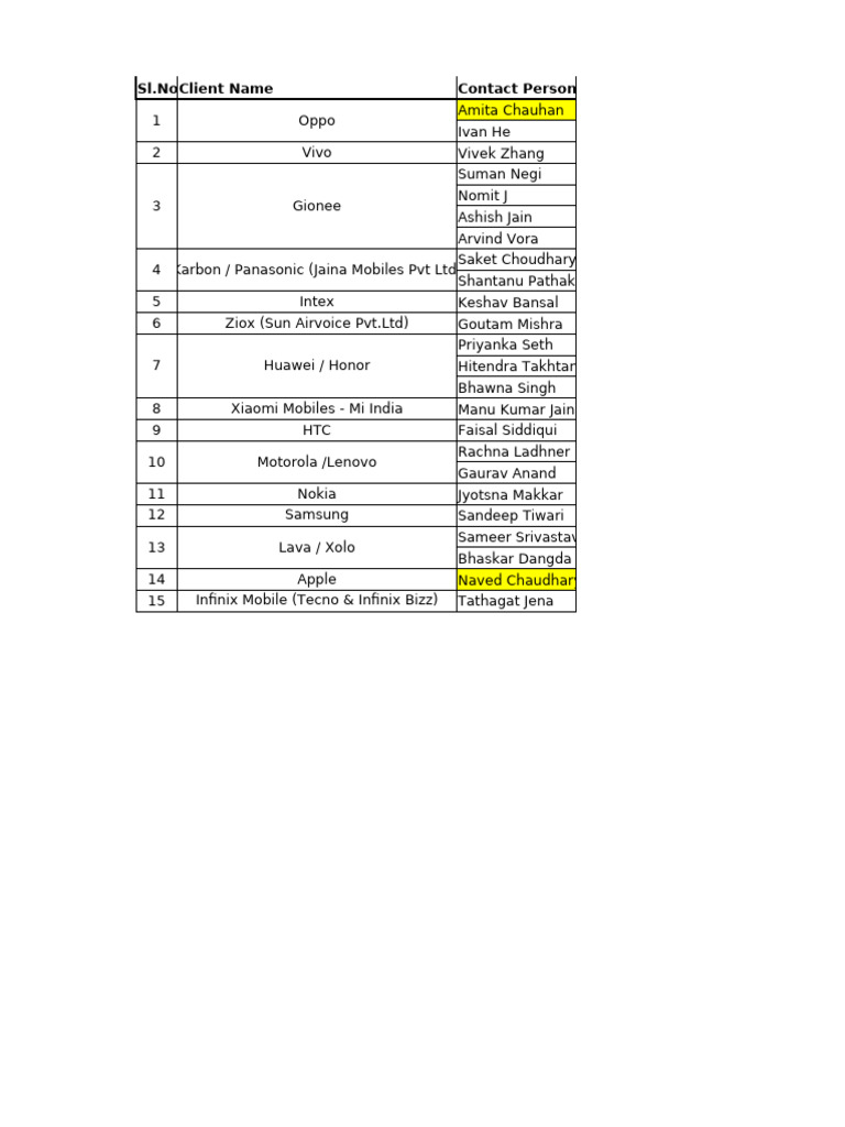 NoClient Name Contact Person