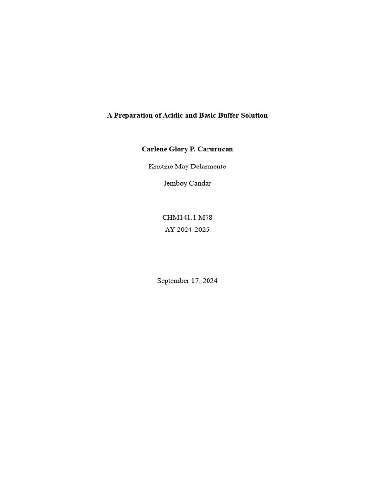 the dilute solutions were prepared. Lastly, the buffer solution was made, and the pH was