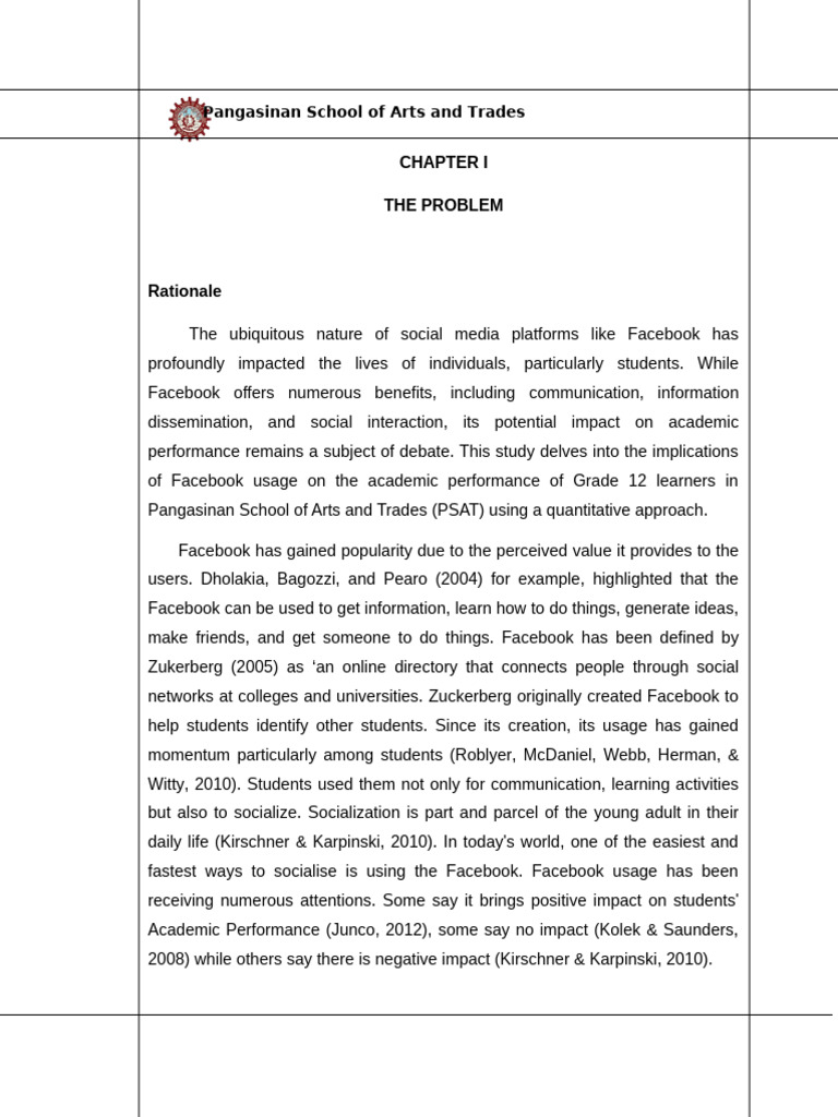 Pangasinan School of Arts and Trades (PSAT) using a quantitative approach.