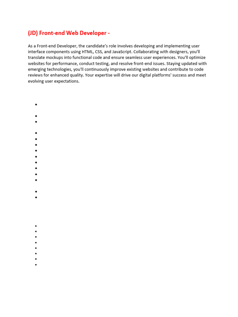 websites for performance, conduct testing, and resolve front-end issues. Staying updated with
