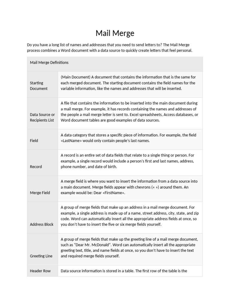 Mail Merge Definitions