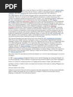 Pilipinas ay Filipino at, hangga't walang ibang itinadhana ang batas, Ingles. Ang mga wikang