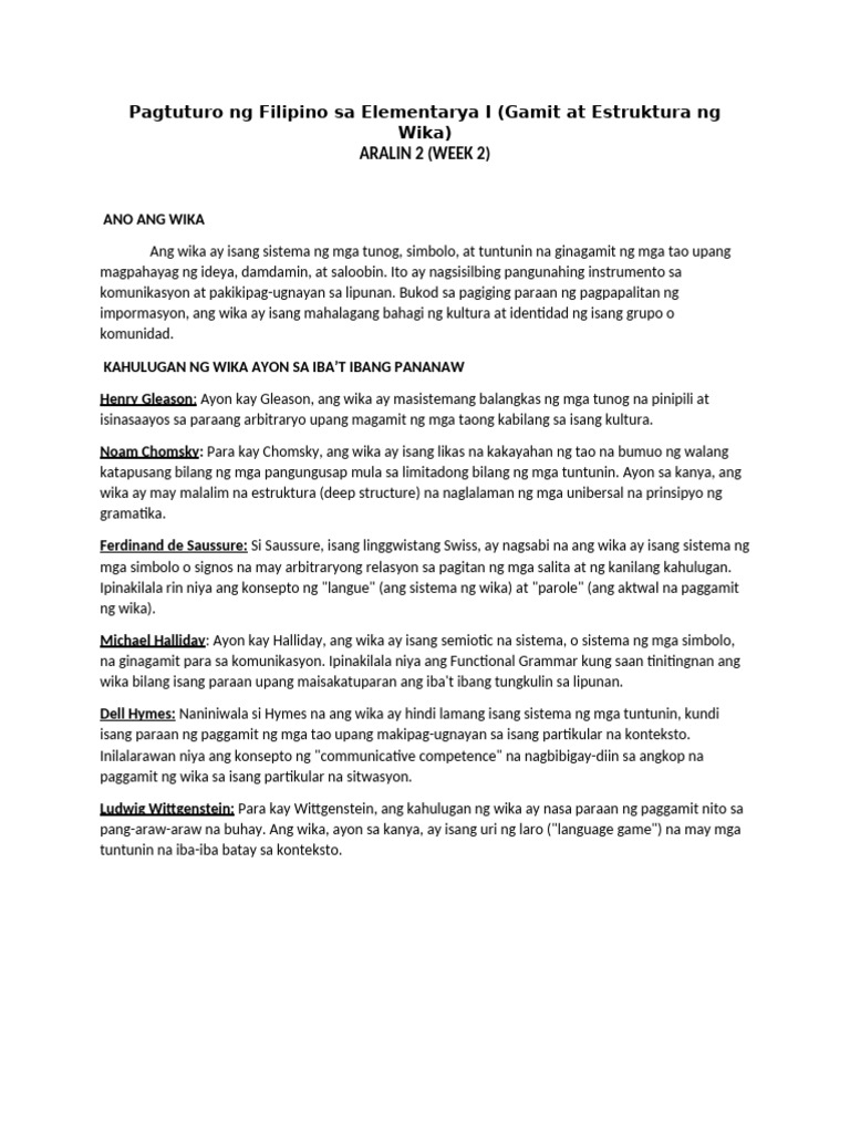 KAHULUGAN NG WIKA AYON SA IBA’T IBANG PANANAW