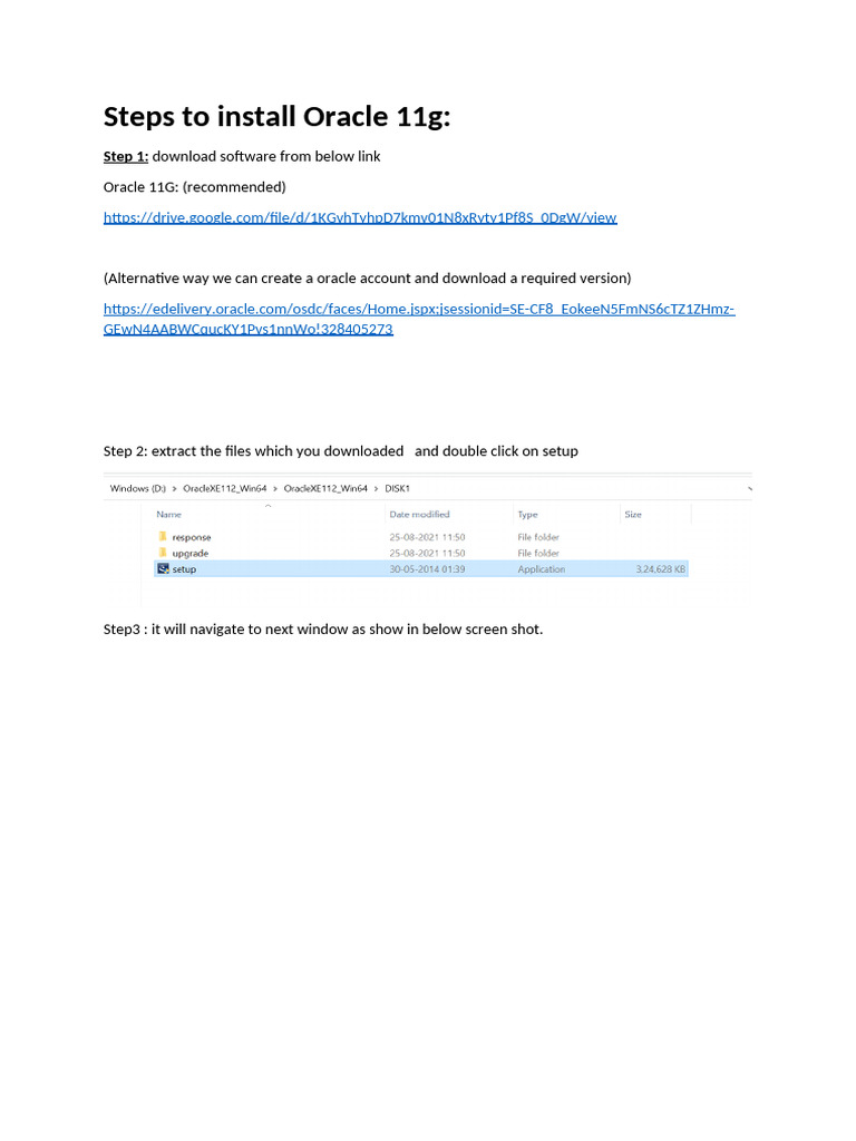 Steps to install Oracle 11g: