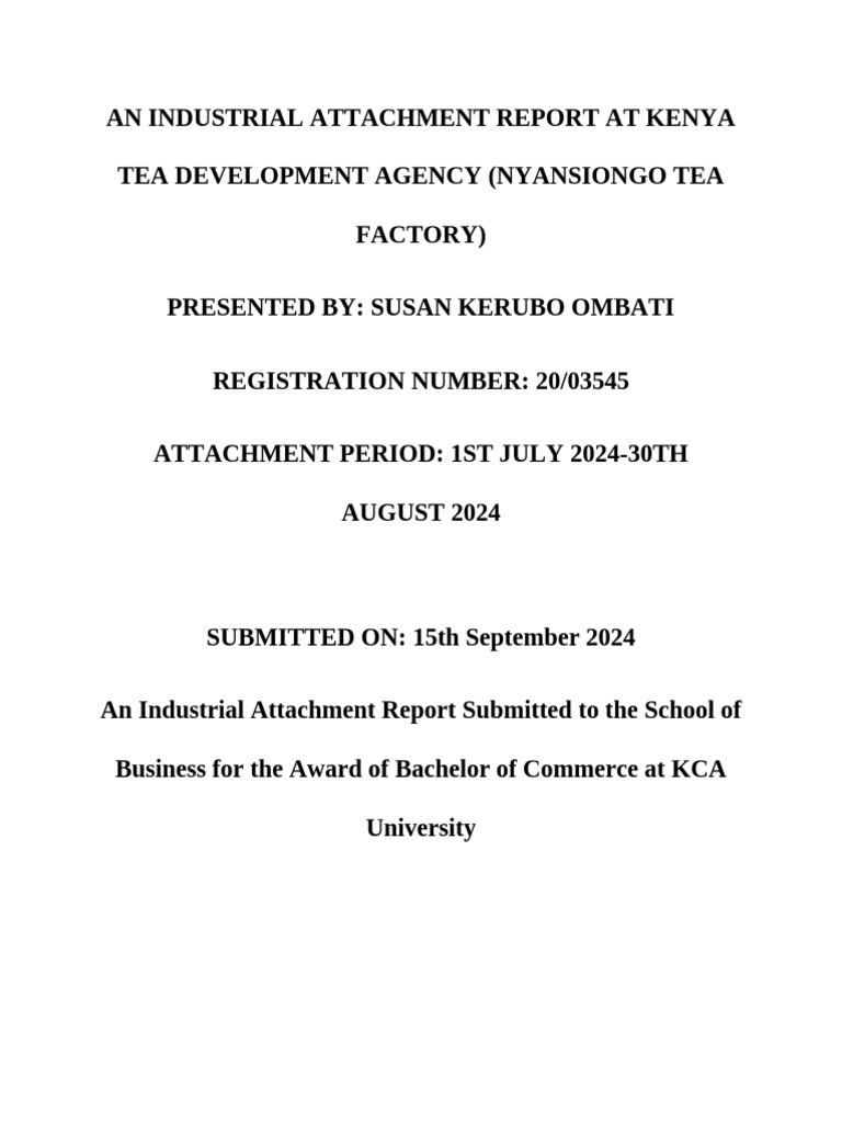 AN INDUSTRIAL ATTACHMENT REPORT AT KENYA