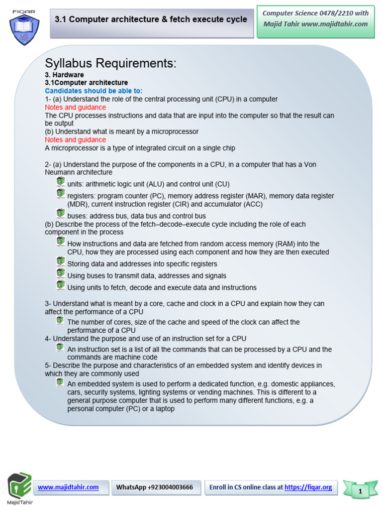 3.1 Computer architecture & fetch execute cycle Majid Tahir www.majidtahir.com