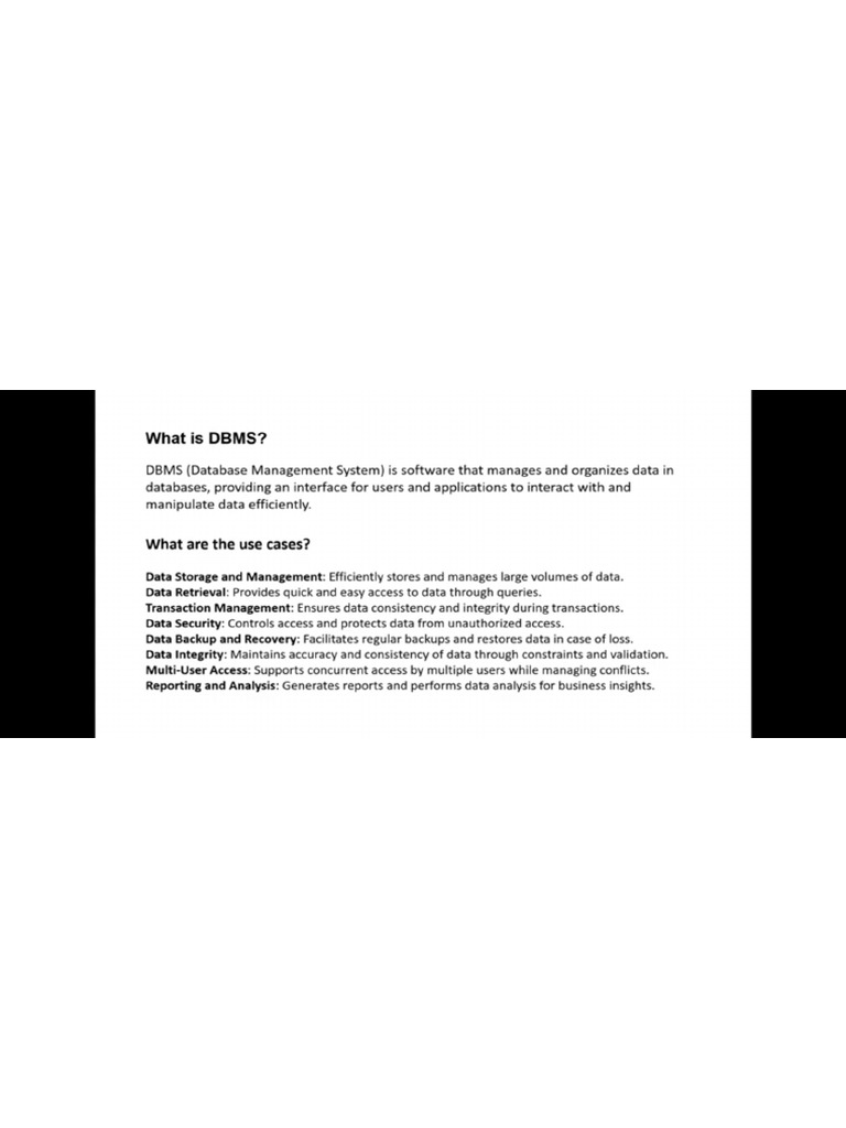 DBMS (Database Management System) is software that manages and organizes data in