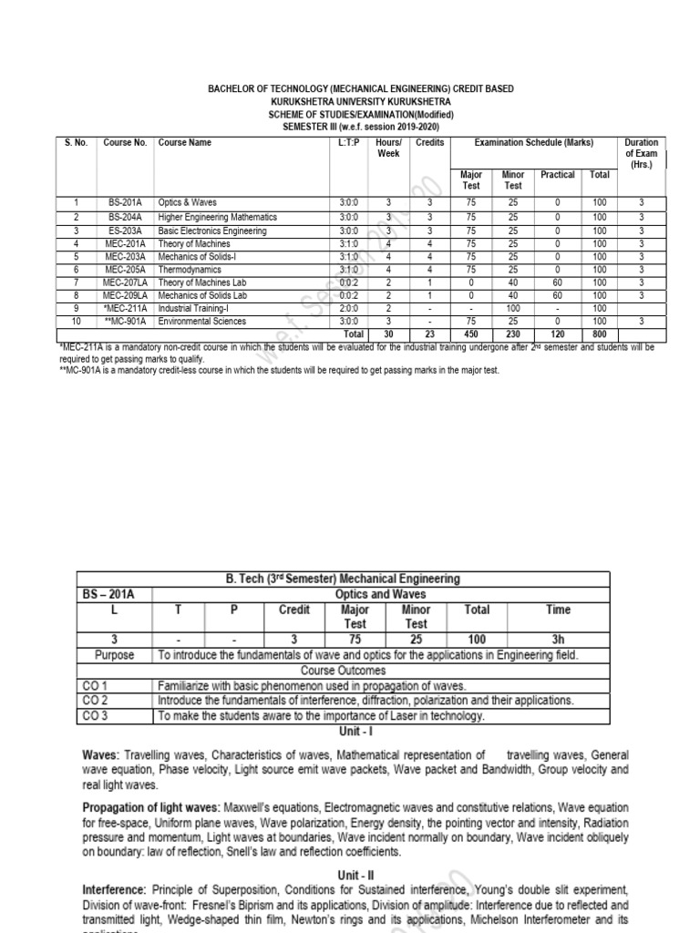 Note: MEC-211 is a mandatory non-credit course in which the students will be evaluated for the industrial training