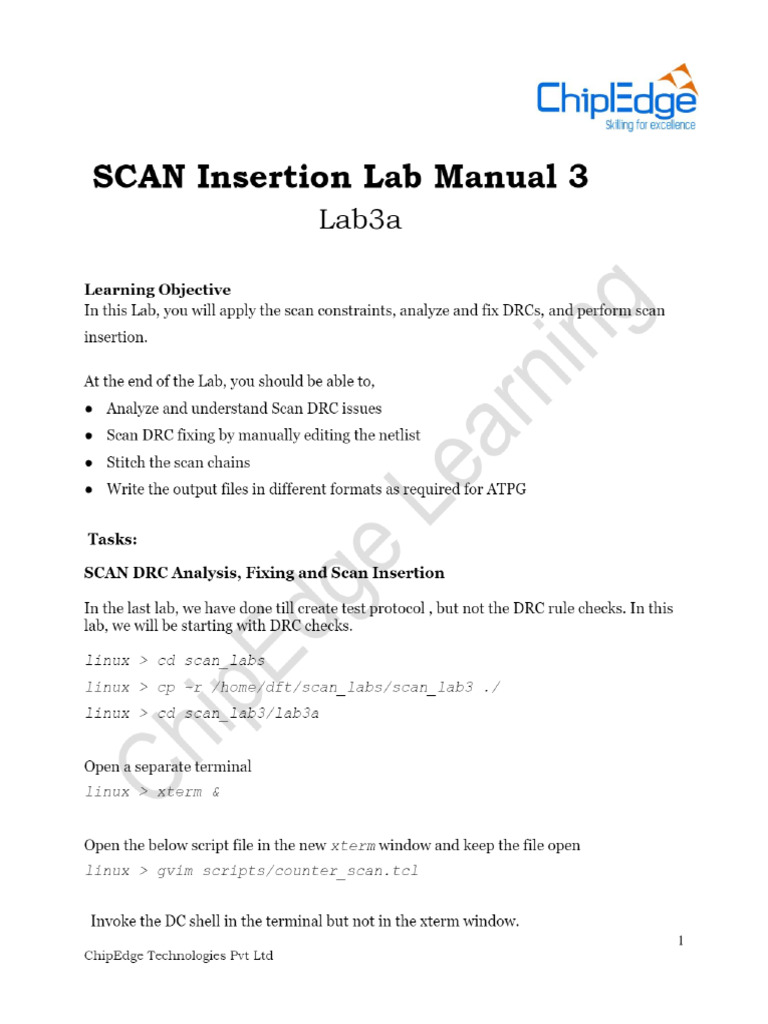 In this Lab, you will apply the scan constraints, analyze and fix DRCs, and perform sean