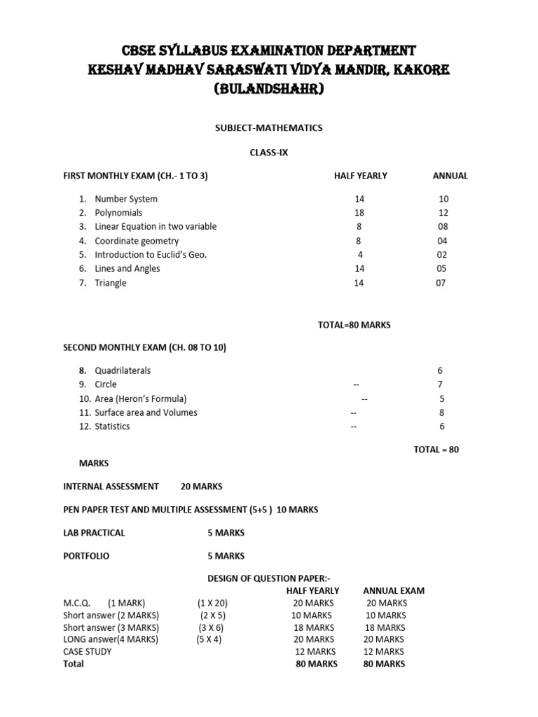 CBSE SYLLABUS EXAMINATION DEPARTMENT